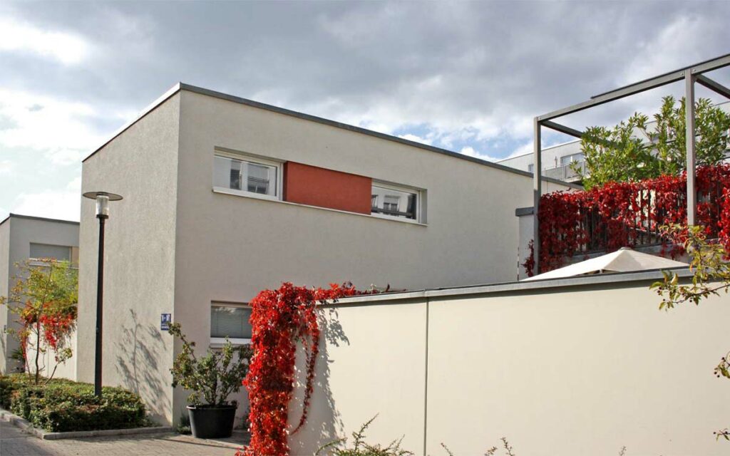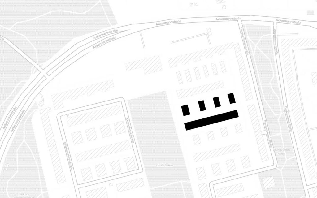 Südlich der stark befahrenen Ackermannstraße wurde von der Stadt München ein neues Baugebiet über einen Städtebaulichen Wettbewerb entwickelt. Die Realisierung erfolgte durch mehrere Bauträger in einzelnen Bauabschnitten. Die 5-geschossige Riegelbebauung entlang der Ackermannstraße fungiert als Schallschutzabschiermung gegenüber dem ruhigen Zentralgelände, das mit niedrigeren Einzel-, Reihen,- oder Geschossbauten gegliedert wurde. Die südlich der Riegelbebauung realisierten sogenannten, Gartenhofhäuser stellten hier ein Novum dar.